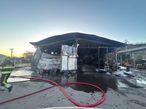 Incendiu puternic în Ardeal: Depozit de materiale de construcții din Cristuru Secuiesc, cuprins de flăcări – FOTO