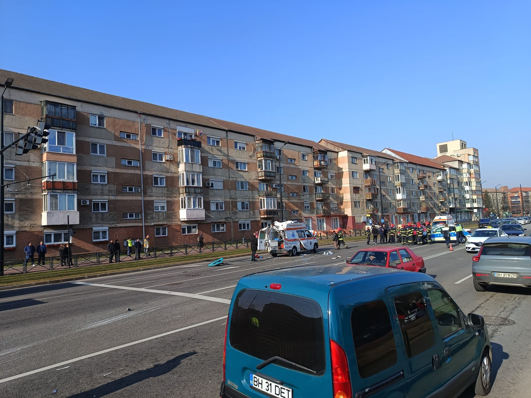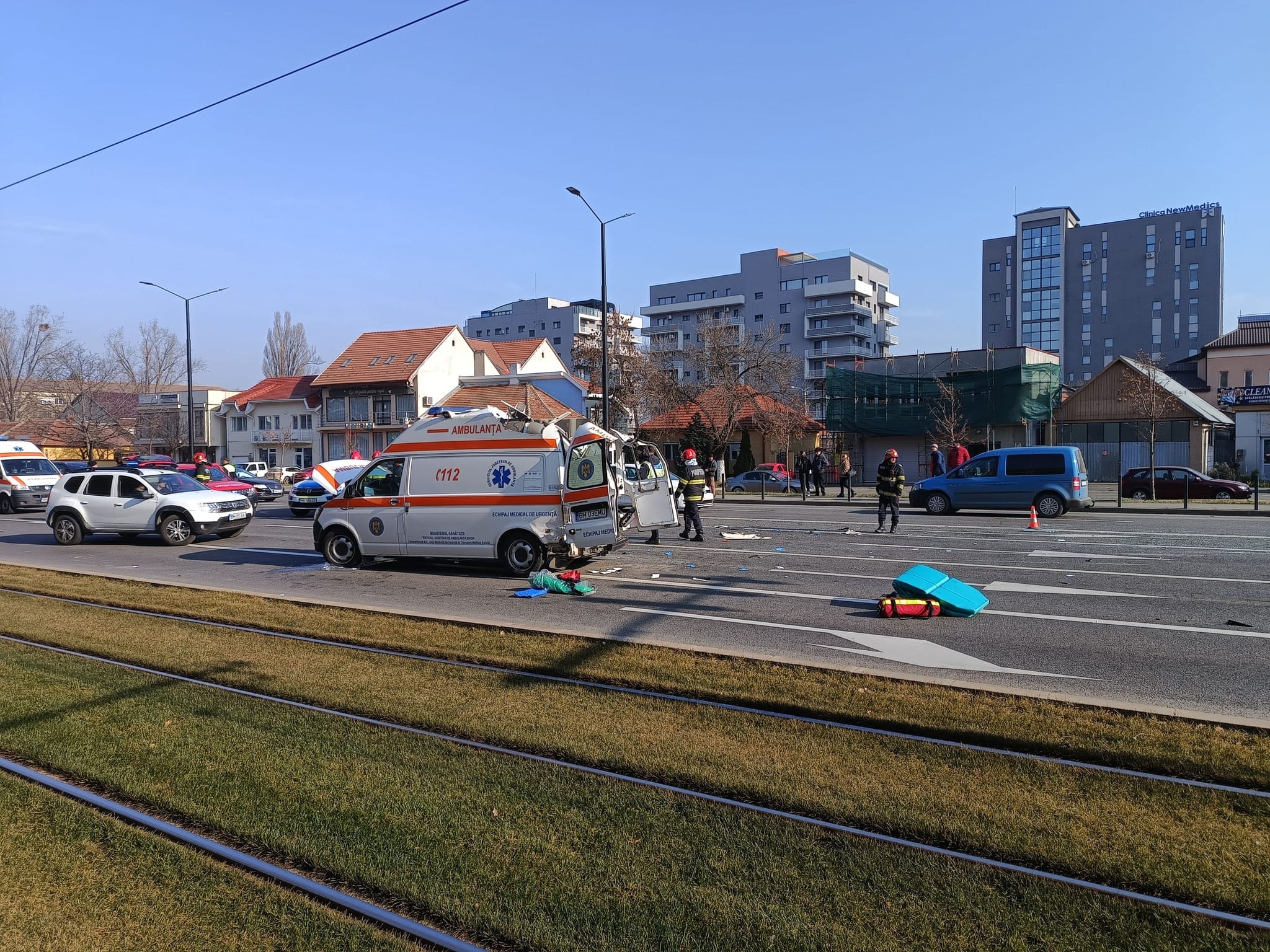 Un accident grav a avut loc marți dimineața, 11 februarie 2025, pe Bulevardul Dimitrie Cantemir din Oradea, implicând o ambulanță aflată în misiune și două autoturisme. În urma impactului, ambulanța s-a răsturnat, iar martorii au intervenit pentru a o repune pe roți.