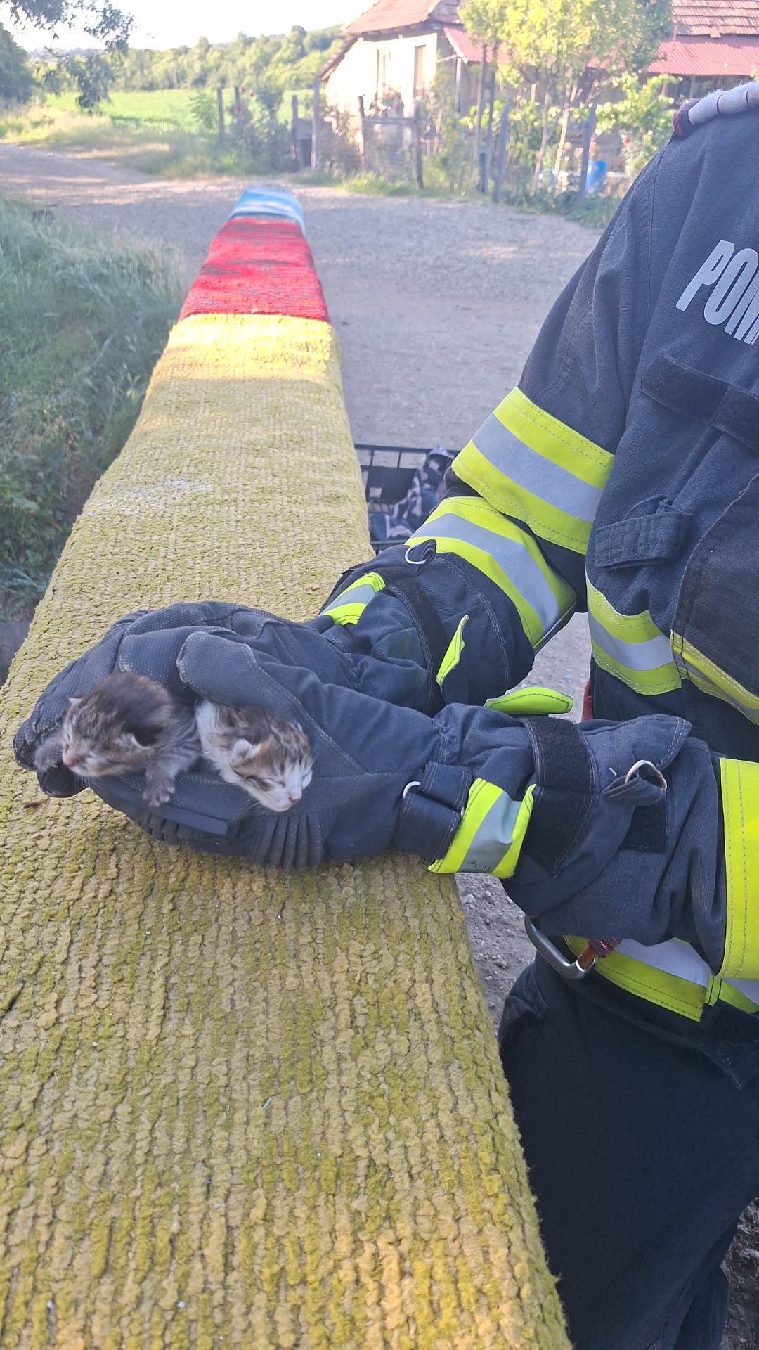 Sălaj – Două pisicuțe salvate de pompierii din Jibou, după apelul unei localnice