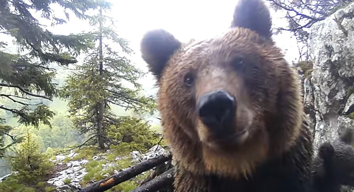 „După ce un cerb și un țap de capră neagră au pozat în fața camerei, o ursoaică a confundat-o cu o bucată de slănină. Când s-a lămurit că nu e bună de mâncat, ne-a lăsat cu ochii-n soare, nu înainte să facă un prim-plan cu puiul.”, au transmis reprezentanții Parcului Național Piatra Craiului.