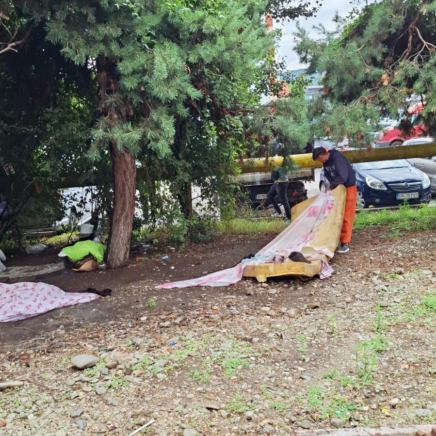 Deși au domiciliu stabil, au ales acest loc pentru a fi aproape de “activitatea zilnică”: cerșit și căutat PET-uri pentru valorificare prin SGR.