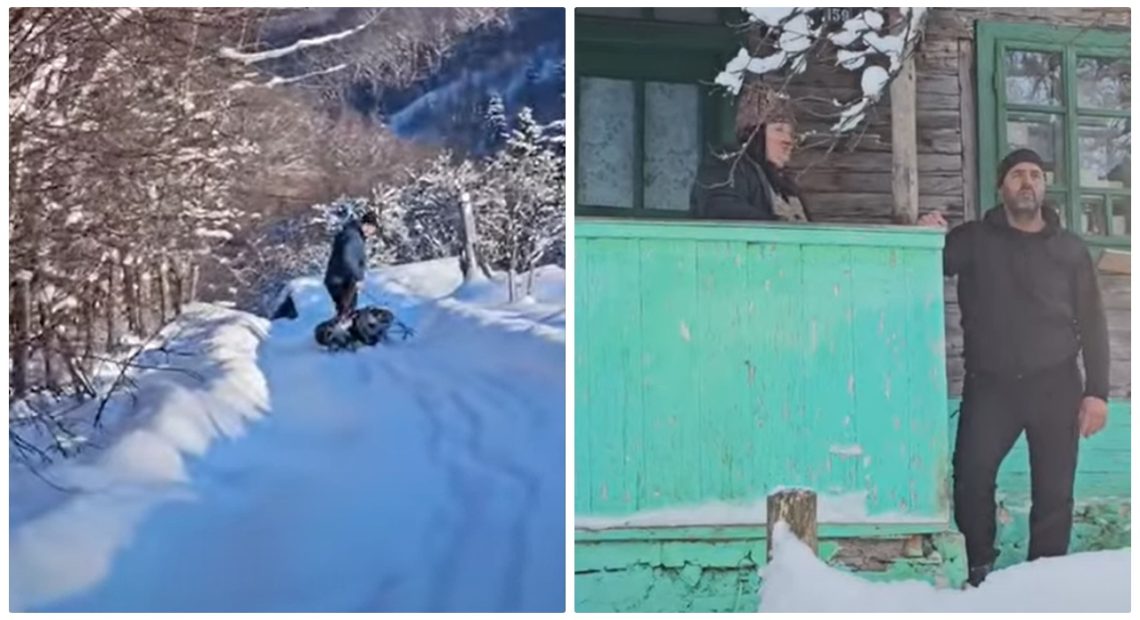 Voluntarii au parcurs o parte din traseu cu o mașină de teren, iar ultimii kilometri i-au făcut pe jos, prin troiene, trăgând o sanie încărcată cu alimente și produse de strictă necesitate. Efortul a fost răsplătit de bucuria cu care tanti Dorina i-a întâmpinat.