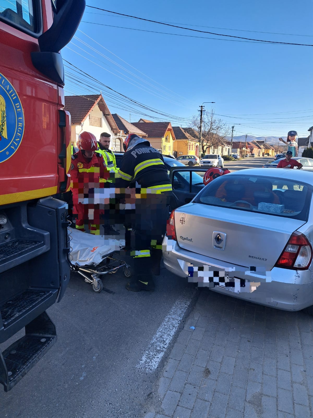 Detașamentul de pompieri Sebeș intervine pentru asigurarea masurilor specifice și prim ajutor medical la un accident rutier în Petrești, strada 1 mai.