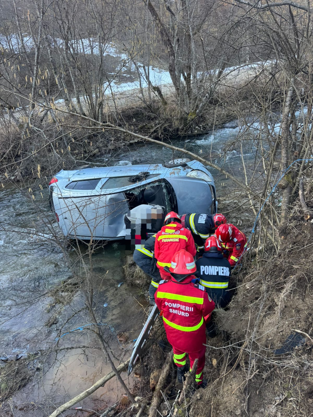 Salvatorii spun că a fost vorba despre un autoturism care a părăsit partea carosabilă fiind proiectat în albia râului. În interiorul autoturismului nu sunt persoane blocate.
